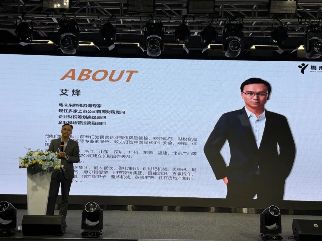 随后,蒙雅蕾副会长详细介绍了承办单位广州粤未来科技有限公司的发展理念与业务优势,并隆重引荐了本次讲座的授课嘉宾——财税专家艾烽老师。大家纷纷为蒙雅蕾副会长的精心筹备与大力支持点赞,称赞其为商会会员办实事、办好事,让大家在家门口就能学到专业实用的知识。