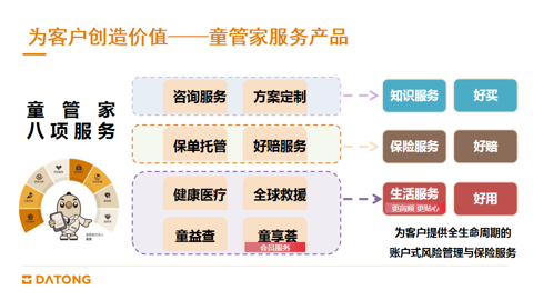 大童将其各类服务整合为名为 “童管家” 的保险服务产品,旨在通过“科技+顾问”的形式提供管家式服务。其主要服务模块包括: