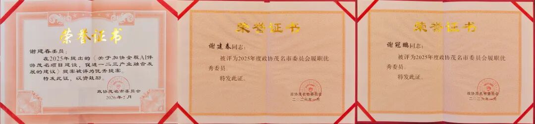 祝贺:陈庆南、谢建春、谢冠鹏获评为“2025年度茂名市委员会履职优秀委员”